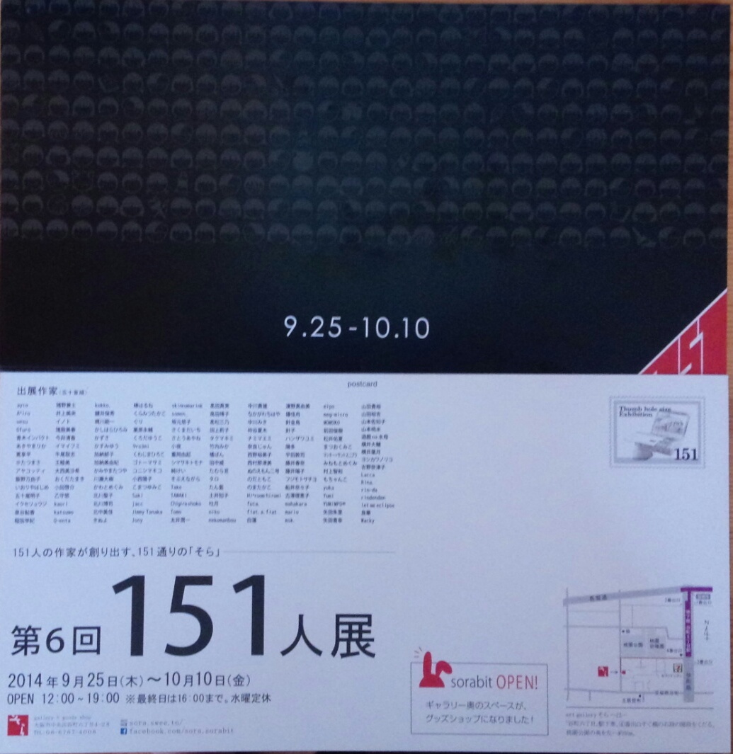 ★今週10/10まで 谷町6丁目の『ギャラリーそら』にて「151人展」に参加しております!。 もしよかったら、あと少しだけですがご笑覧頂ければ幸いです。
