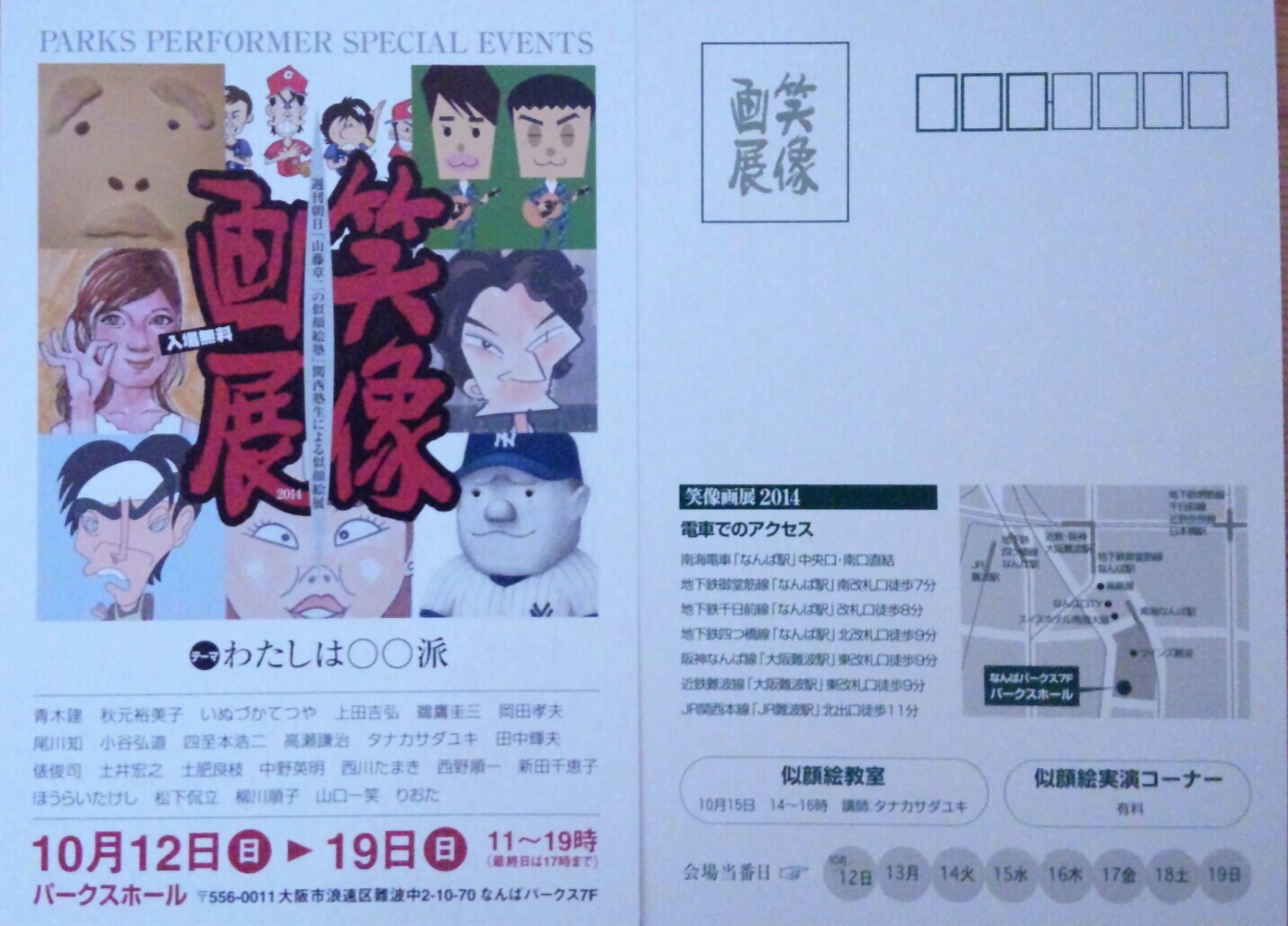 ★それから、入れ違いになんばパークスで始まるのが、笑像画展です。 席描きも期間中似顔絵のコーナーがあって、有料ですが参加出来ます。 私は、作品のみですが是非とも癖のある似顔絵の楽しさを感じて頂ければ嬉しいです。
