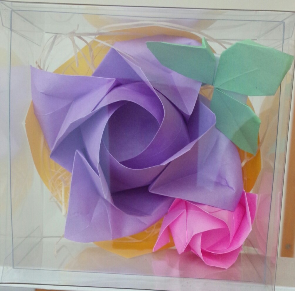 今回は25cmの折り紙と15cmの折り紙の2種類のばらをプレゼント。