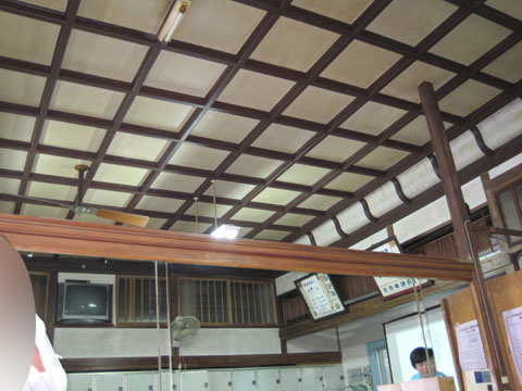 こんな感じの脱衣所でみんながひしめき合って、スライドを見ながら銭湯の解説をききました。「こんな気分の時にはこの温泉にいって癒されましょう〜。」とかね。
