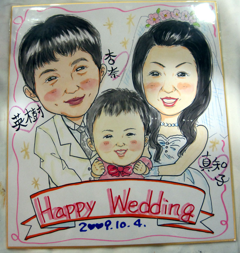 ひょほ〜〜〜。ウェルカムボードとかじゃなくて、入籍記念日の似顔絵です。