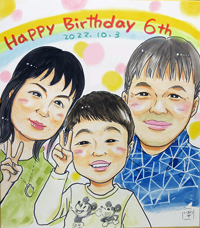 毎年描かせていただくご家族の似顔絵です。早いものでもう6年間のお付き合いですね〜。