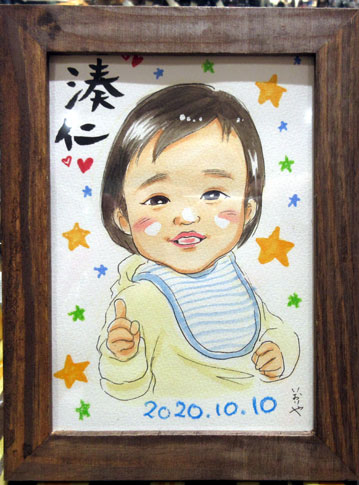 リピーター様のご依頼でした。前回はゲストさんが描かせていただき、今回はいおりやが描かせていただきました。前回の絵を参考にしてと言うご依頼だったので、ちょっとだけいおりやのテイストと違うのですが、それも面白かったです!