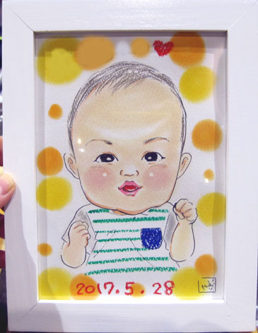 初めての誕生日記念に。これからも毎年記念になって、似顔絵を描きにいらしてくださいね〜。