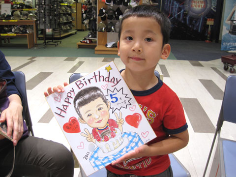 お誕生日の記念にという似顔絵です。ぱっちり二重が印象的なお子さんでした。
