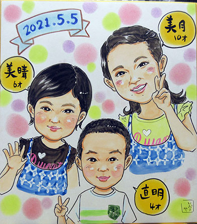 こちらは毎年子供の日の記念に描かせていただいてます。今年で10回目。全てコンプリートしているお姉ちゃんの成長がとてもよくわかる長いお付き合いのリピーター様です。去年も今年も子供の日が緊急事態宣言だったのですが、こうやってお描きできてよかったです!弟君はいよいよ恥ずかしがり屋さんに突入。来年もお待ちしてま〜す。