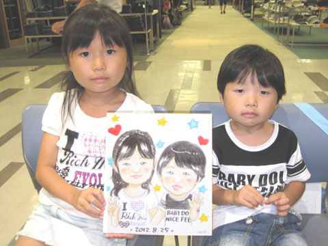 商業施設での似顔絵コーナーを開催。