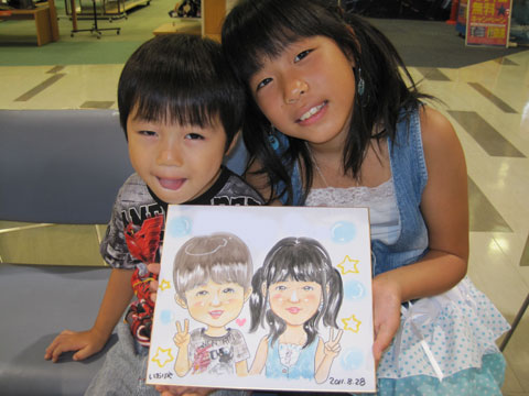 商業施設での似顔絵コーナーを開催。