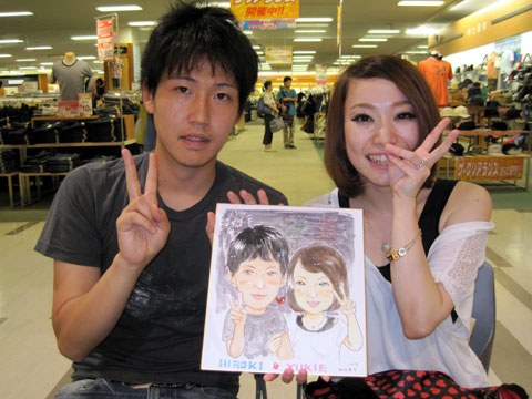 素敵なカップルさんでした。忙しい二人の初めての似顔絵はどうでしたかね〜?