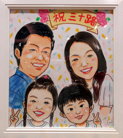 まずは、息子さんご夫婦の三十路祝いにと言う家族似顔絵をご依頼いただきました。