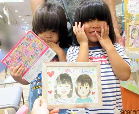 こちらもリピーター様です!以前も描かせていただき、今回は終了間際の駆け込みで来てくださいました。ありがとうござました。お子ちゃまたちのニコニコ笑顔が見ていてほっこりして、描きながらついつい私もマスクの下で笑顔になってました。(見えなくてよかった)