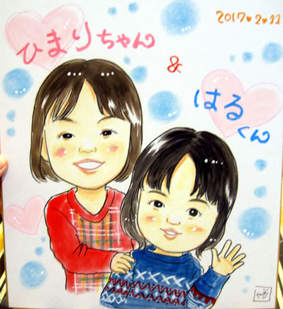 生後一ヶ月の妹ちゃんとの初似顔絵です。お姉ちゃんは、元気一杯!これから仲良く成長してくださいね〜。