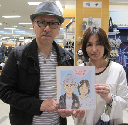 可愛くて素敵な似顔絵を描いてくださる裕美さん、お客様が出来上がった似顔絵をみて、喜んで歓声が上がってました〜。