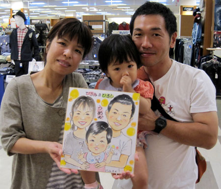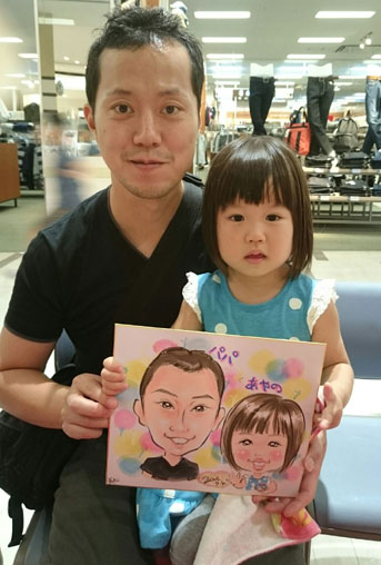 親子さんでの似顔絵記念。すっかりおねむになってしまいましたけど、これからの成長が楽しみですね。次回は是非ご家族でお待ちしておりますよ。