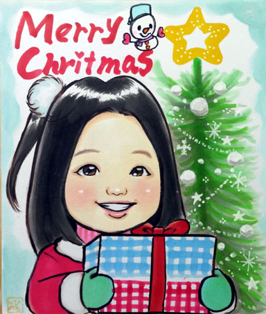 可愛らしいお子ちゃまの似顔絵。本日初のクリスマス仕様です。