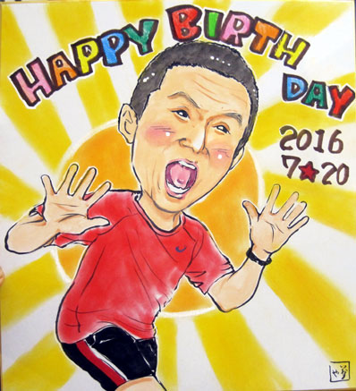 還暦のお誕生日祝いにというご依頼。間寛平さん似ということですが、マラソン大好きだそうです。これからも元気に走り続けて欲しいですね!