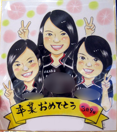 三連ちゃんの似顔絵ですね。卒業する三年生にプレゼントしたいとのことでした。