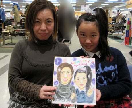 商業施設での似顔絵コーナーを開催。