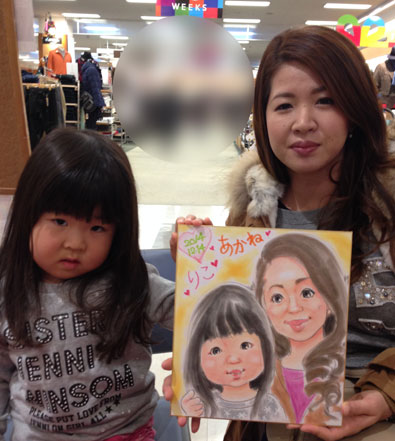 こちらは二組の親子さんですね〜。いつも、似顔絵を誘ってもウンと言って下さらなかった娘さんが、今日は自分から似顔絵を描こう!とお母さんを誘ってくださったそうです!嬉しいですね。