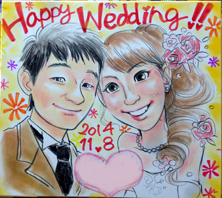 ・・という感じでございました。三日間の順不同でございますが、まだまだ掲載出来なかったお写真もありますが、本当にありがとうございました!特にウェディングの御注文が多く、サイズもちょっと大きめのものがありまして、さすがに現場では描けなかったので、自宅でせっせと描き上げました。大きいサイズだと、やっぱりどうしてもパースや配置、作画のよしあしがかなり難しいので、出来上がると自分でもすっごい嬉しいですし、愛着湧きすぎてお渡しするのが淋しくなるのです・・。そんな私の美容と命を削った作品が、皆さんのお手元で、ささやかながらも喜びになって下さると聞くだけで、又頑張ろうと言う気持ちでいっぱいになります。