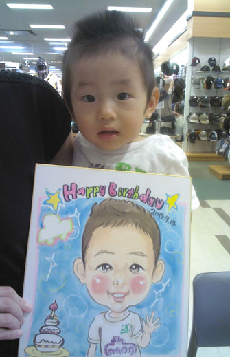 この日はちょっとゆっくり目の日だったので、画像自体は少ないのですが、面白い事におこちゃんは1歳の記念の似顔絵と言うのが重なって、びっくりびっくり!!。しかも、YUKIさんと同じお誕生日の方もあったそうで・・・。これも縁なんでしょうねえ。