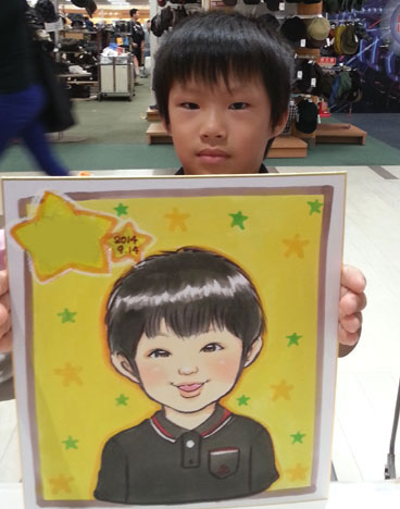 似顔絵は初めてのおこちゃんでした。とっても可愛らしいお目目のクリリとした男の子。