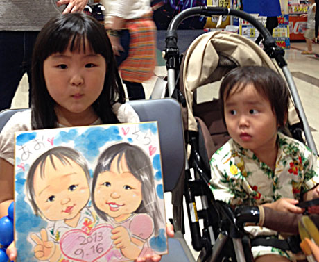 愛らしい子供絵を描かせたら、ぴか一のなかたにさん。この日も子供さんの素敵な似顔絵が