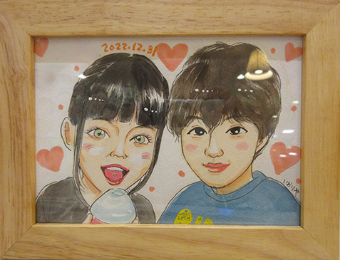 2人の記念にということで、 似顔絵を描かせていただきました!ありがとうございました〜。
