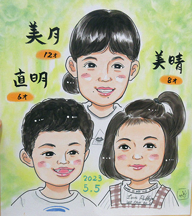 こちらも同じくイオンモール堺北花田にて描かせていただいたご家族様です。