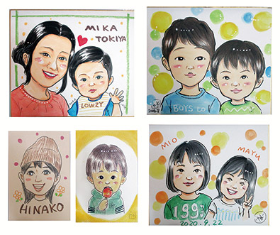 イベントやお祭り等で似顔絵を描いたり、ネット注文等で似顔絵を受注したりしています。