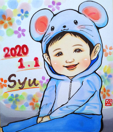 こちらはきょうだい似顔絵です。ちょっとだけくりんくりんの髪の毛が愛らしい弟くん。これからも仲良く楽しく成長してね。