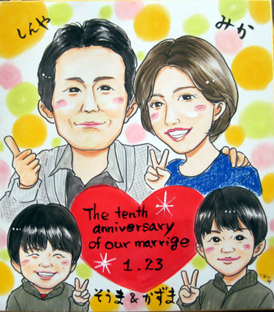 こちらは家族似顔絵です。結婚10周年記念に奥様へのプレゼントだそうです。
