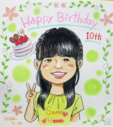キッズクーポンのお誕生日似顔絵は、 小学六年生までです。