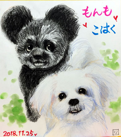 姉妹ちゃんの似顔絵です。仲良く成長してね〜。