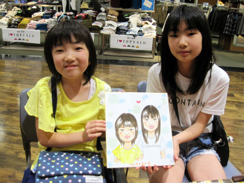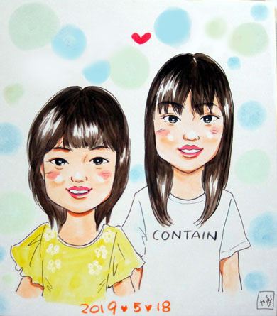似顔絵はこれまでにも色々と書いてもらったことがあるそうで、コレクションに加えてくださってありがとうございます。姉妹って小さいころはライバルだったりするのですが、大きくなると