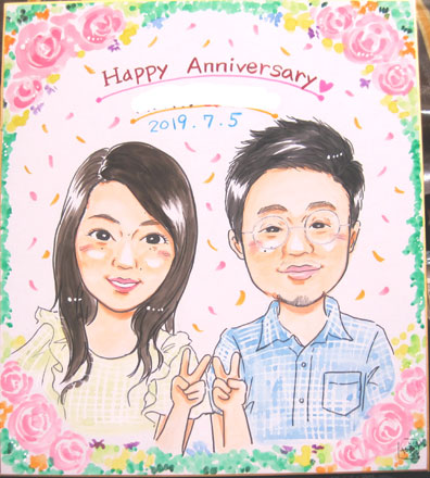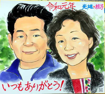 ご夫婦の似顔絵です。いつまでも元気でいてくださいね。