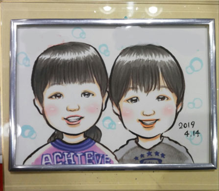 こちらは姉弟ちゃんのミニ似顔絵です。可愛い笑顔をありがとうございました。