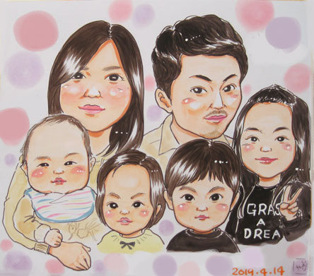 こちらは、大家族さんの似顔絵です。