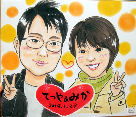 バレンタイン似顔絵のご依頼でした。小さいけど、ぜひお家に飾ってくださいね。
