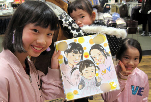 商業施設での似顔絵コーナーを開催。