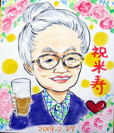 こちらは、小色紙用で。大好きなお酒とともに、米寿のお祝いだそうです。