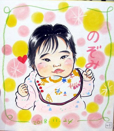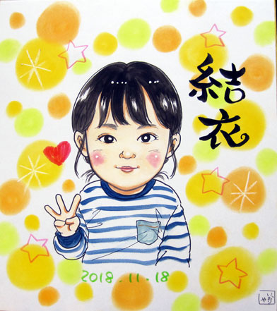 七五三の記念にと似顔絵をご依頼いただきました。ただいま前歯の生え変わり中です。
