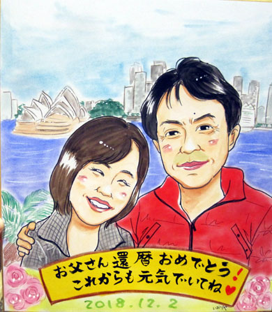 お父様の還暦祝いのプレゼントにというご依頼でした。記念のオーストラリア旅行の思い出も入れてみました。