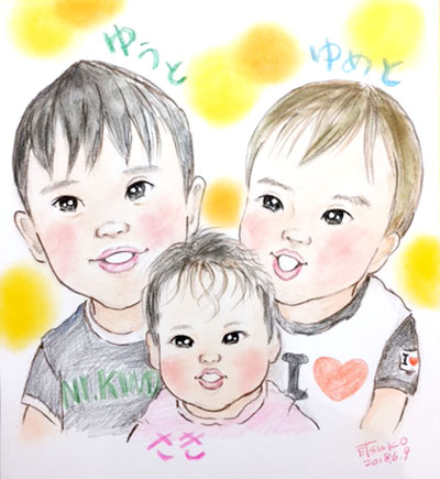 まずはechanのお客様。三兄弟のかわいらしい似顔絵でした。
