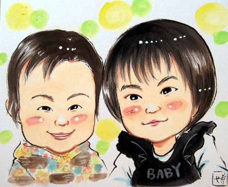 親子での似顔絵を描かせていただきました。とっても素敵可愛らしい親子さんでした。