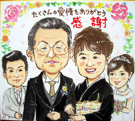 このほかにも、ウェディングのご依頼やお祝いの似顔絵やご家族でも学生さんのご依頼など