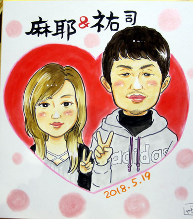 こちらはラブラブカップルさん。似顔絵は初めてだそうです。