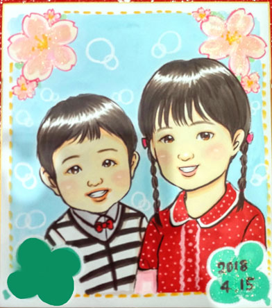 姉弟ちゃんの似顔絵。かわいらしいきょうだいでした。