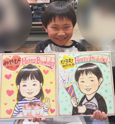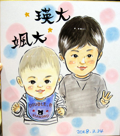 お子さんの似顔絵。これからの成長がとっても楽しみな兄弟くんです。