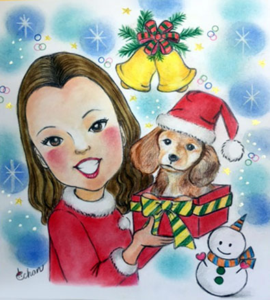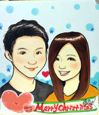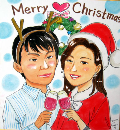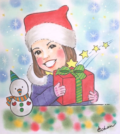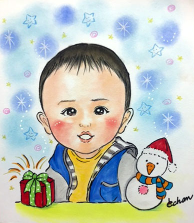 可愛らしいお子ちゃまの似顔絵。本日初のクリスマス仕様です。